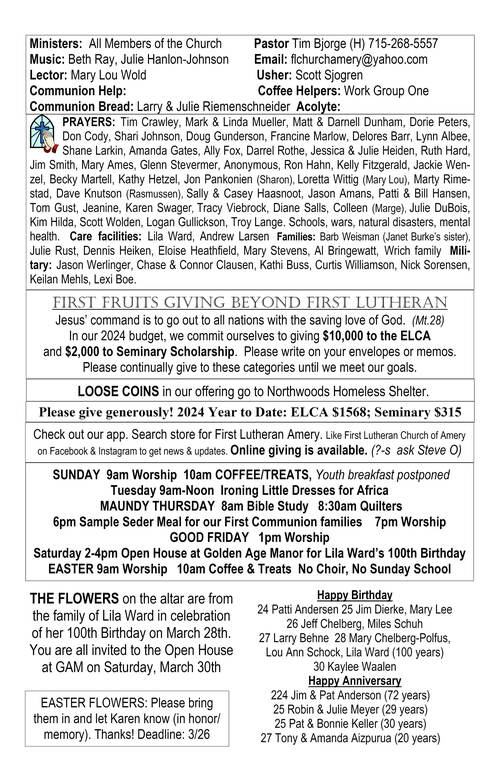Youth Update 4/2/2025Youth Update 4/5/2025Congregational Update: April 4, 2025Bulletin: April 5, 2025Congregational Update: April 11, 2025Bulletin: April 13, 2025Congregational Update: April 17, 2025Bulletin: April 20, 2025 Easter SundayCongregational Update: April 25, 2025Bulletin: April 27, 2025Youth Update 4/27/2025