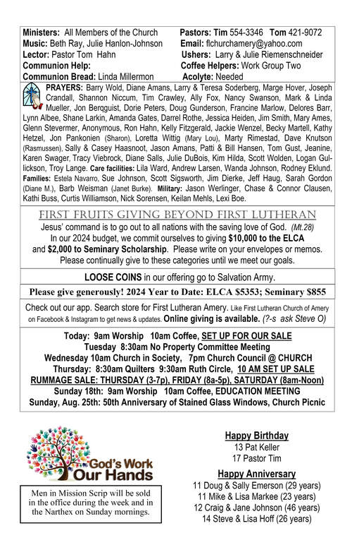 Bulletin: August 3, 2025Congregational Update: August 1, 2025Bulletin: August 10, 2025Congregational Update: August 8, 2025Bulletin: August 17, 2025Congregational Update: August 15, 2025Bulletin: August 24, 2025Congregational Update: August 22, 2025Youth Update August 28, 2025Bulletin: August 31, 2025Congregational Update: August 29, 2025
