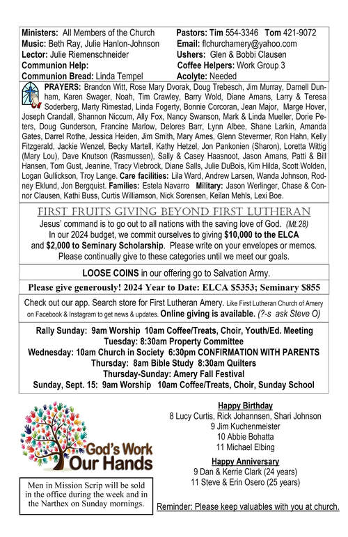 Bulletin: August 3, 2025Congregational Update: August 1, 2025Bulletin: August 10, 2025Congregational Update: August 8, 2025Bulletin: August 17, 2025Congregational Update: August 15, 2025Bulletin: August 24, 2025Congregational Update: August 22, 2025Youth Update August 28, 2025Bulletin: August 31, 2025Congregational Update: August 29, 2025