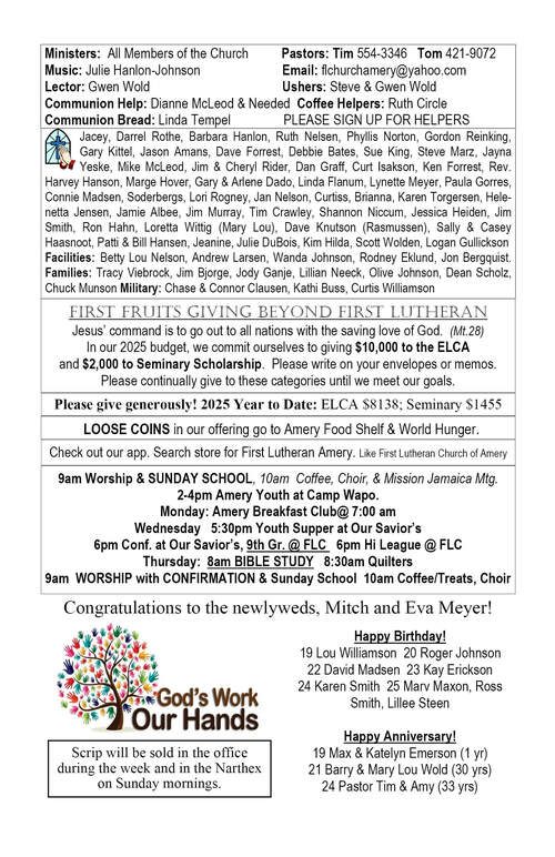 Bulletin: August 3, 2025Congregational Update: August 1, 2025Bulletin: August 10, 2025Congregational Update: August 8, 2025Bulletin: August 17, 2025Congregational Update: August 15, 2025Bulletin: August 24, 2025Congregational Update: August 22, 2025Youth Update August 28, 2025Bulletin: August 31, 2025Congregational Update: August 29, 2025