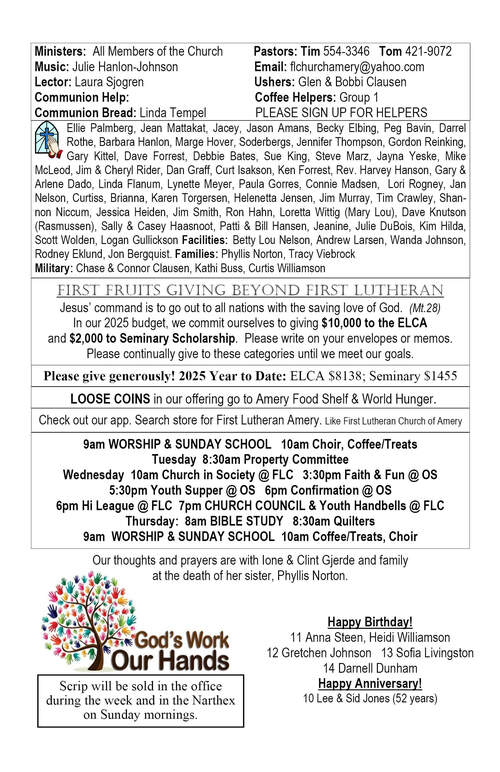 Bulletin: January 5, 2025Congregational Update: 1/3/2025Youth Update 1/3/2025Congregational Update: 1/10/2025Bulletin: January 12, 2025Youth Update 1/10/2025Congregational Update: 1/17/2025Bulletin: January 19, 2025Congregational Update: 1/24/2025Youth Update 1/25/2025Bulletin: January 26, 2025Congregational Update: 1/31/2025Bulletin: February 2, 2025