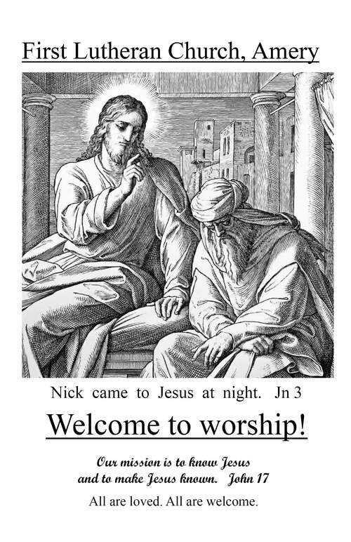 GOSPEL: John 3:1-17 Now there was a Pharisee named Nicodemus, a leader of the Jews. He came to Jesus by night and said to him, "Rabbi, we know that you are a teacher who has come from God; for no one can do these signs that you do apart from the presence of God." Jesus answered him, "Very truly, I tell you, no one can see the kingdom of God without being born from above." Nicodemus said to him, "How can anyone be born after having grown old? Can one enter a second time into the mother's womb and be born?" Jesus answered, "Very truly, I tell you, no one can enter the kingdom of God without being born of water and Spirit. What is born of the flesh is flesh, and what is born of the Spirit is spirit. Do not be astonished that I said to you, 'You must be born from above.' The wind blows where it chooses, and you hear the sound of it, but you do not know where it comes from or where it goes. So it is with everyone who is born of the Spirit." Nicodemus said to him, "How can these things be?" Jesus answered him, "Are you a teacher of Israel, and yet you do not understand these things? "Very truly, I tell you, we speak of what we know and testify to what we have seen; yet you do not receive our testimony. If I have told you about earthly things and you do not believe, how can you believe if I tell you about heavenly things? No one has ascended into heaven except the one who descended from heaven, the Son of Man. And just as Moses lifted up the serpent in the wilderness, so must the Son of Man be lifted up, that whoever believes in him may have eternal life. ”For God so loved the world that he gave his only Son, so that everyone who believes in him may not perish but may have eternal life "Indeed, God did not send the Son into the world to condemn the world, but in order that the world might be saved through him."