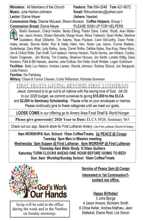 Bulletin: January 5, 2025Congregational Update: 1/3/2025Youth Update 1/3/2025Congregational Update: 1/10/2025Bulletin: January 12, 2025Youth Update 1/10/2025Congregational Update: 1/17/2025Bulletin: January 19, 2025Congregational Update: 1/24/2025Youth Update 1/25/2025Bulletin: January 26, 2025Congregational Update: 1/31/2025Bulletin: February 2, 2025